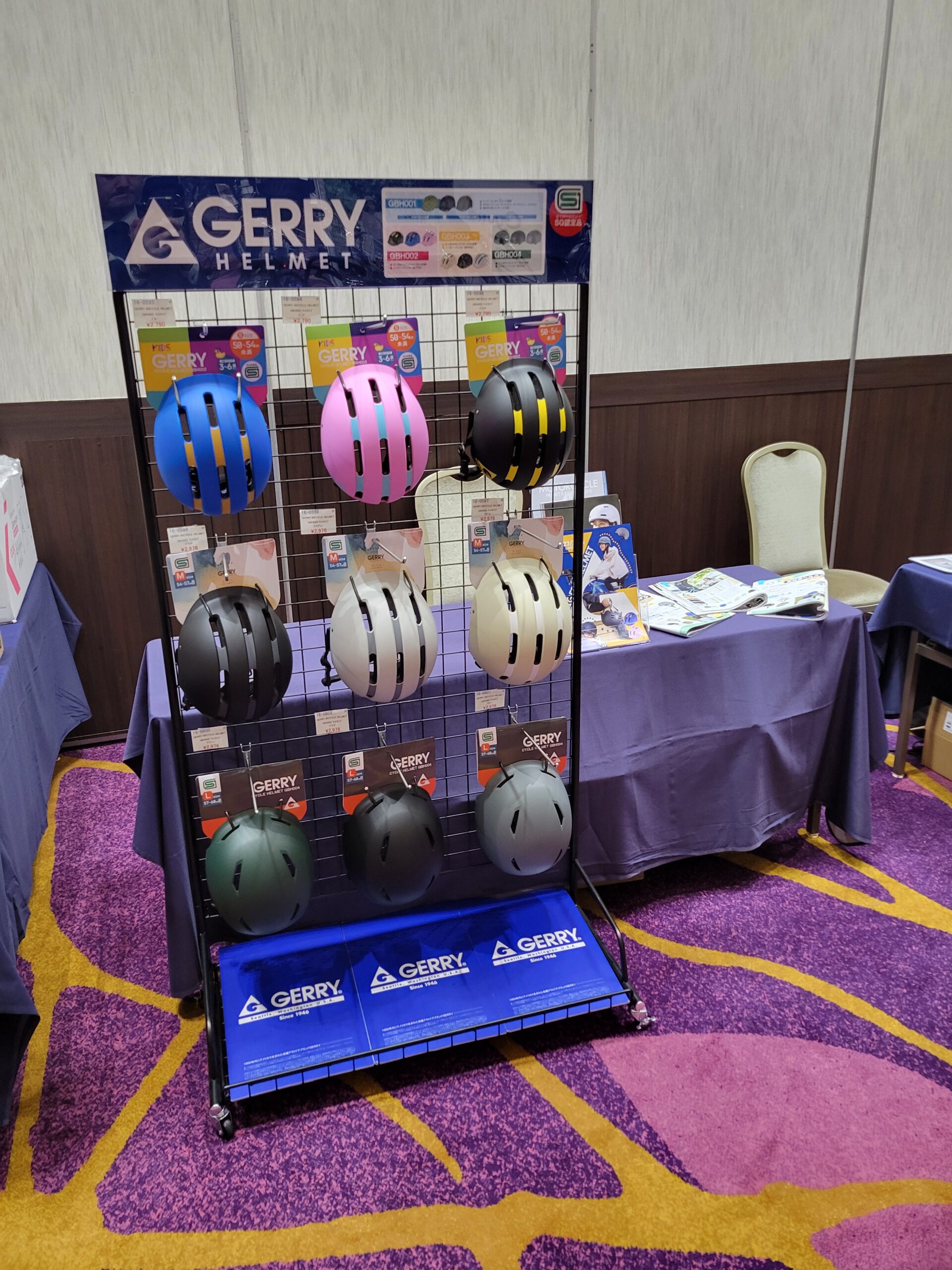 努力義務化となったヘルメットも多数展示